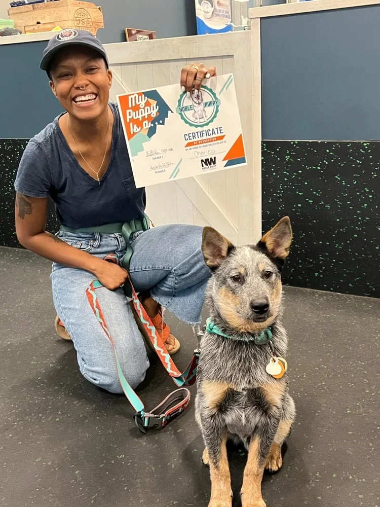 “Noble Woof was patient, insightful and an incredible source of knowledge. It was adorable to watch his excitement when he would see his trainer, but more Importantly she was wonderful at training me!”